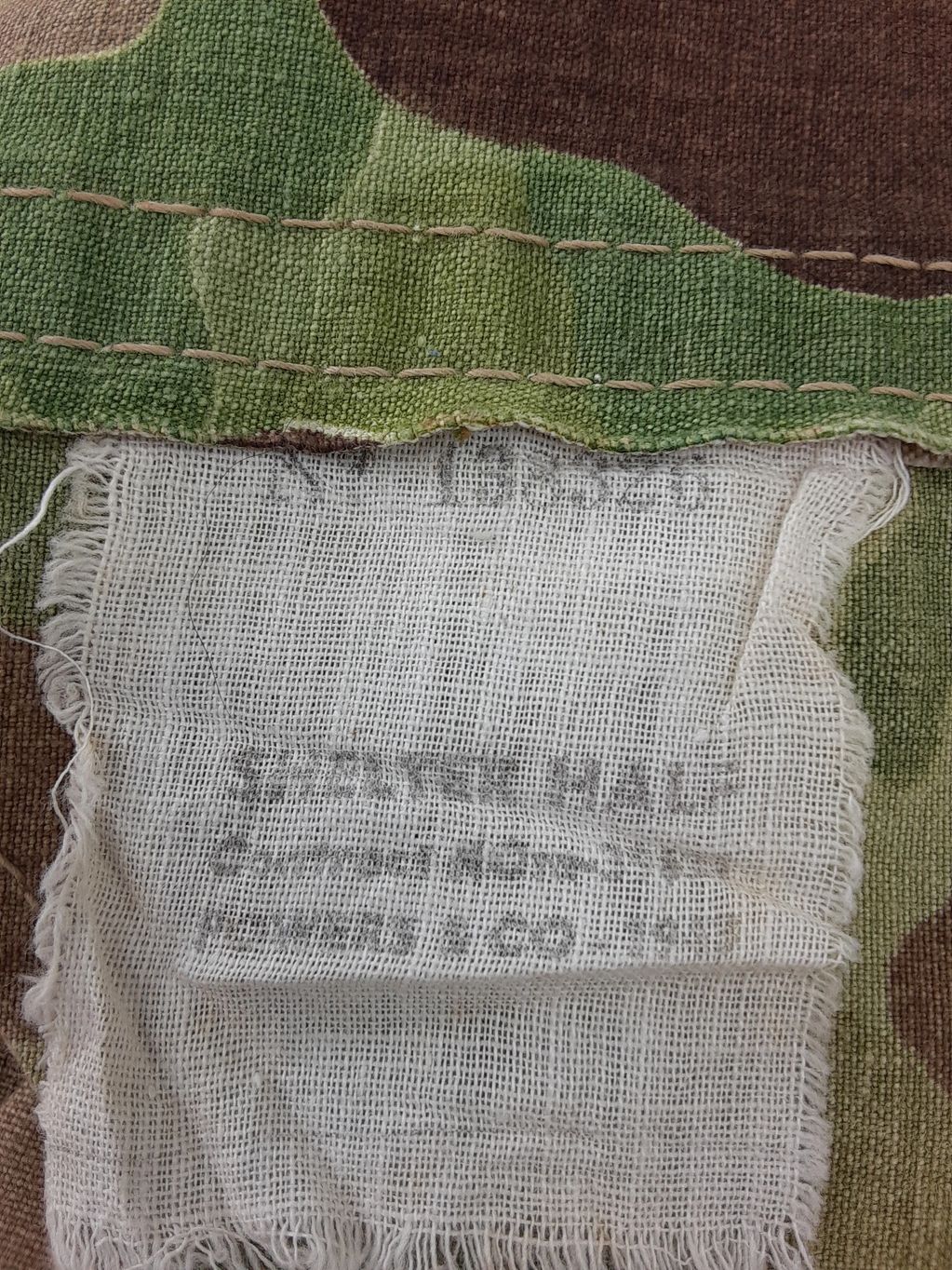 Frog Skin Shelter half is in excellent condition with no tears, holes or repairs. There are no stains either. It has a cloth tag dated 1943.