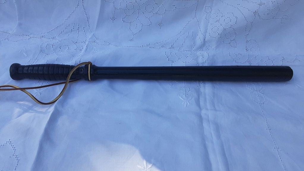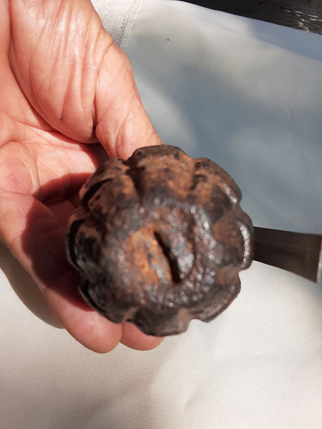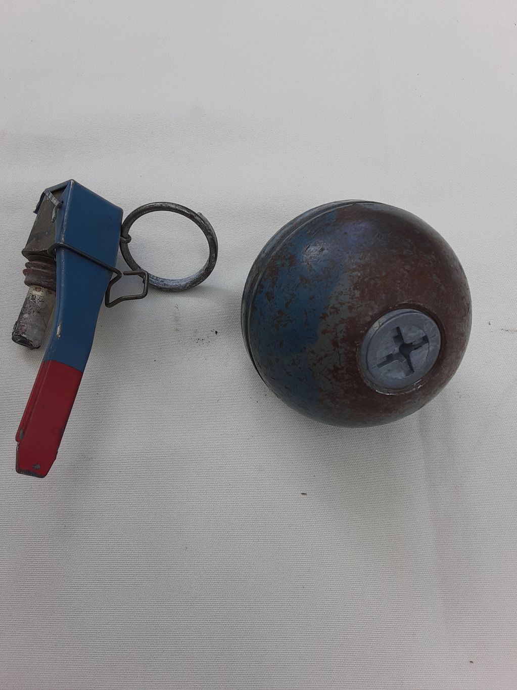 It is blue in color and more like a baseball than the usual pineapple shaped