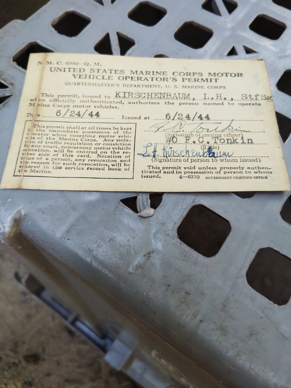 Original WWII 1944 Marines Drivers License