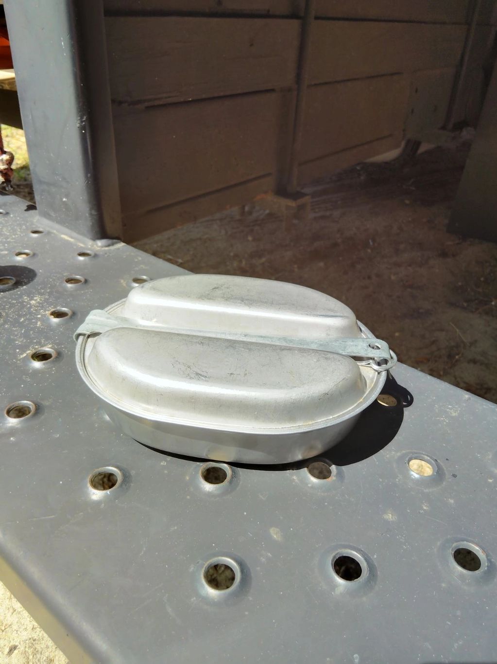 Mess kit closed with its utensils inside.